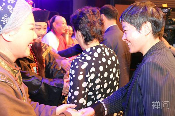 图为晋中市委常委、宣传部长任秀红看望慰问《打虎记》演职人员 杜利勇 摄